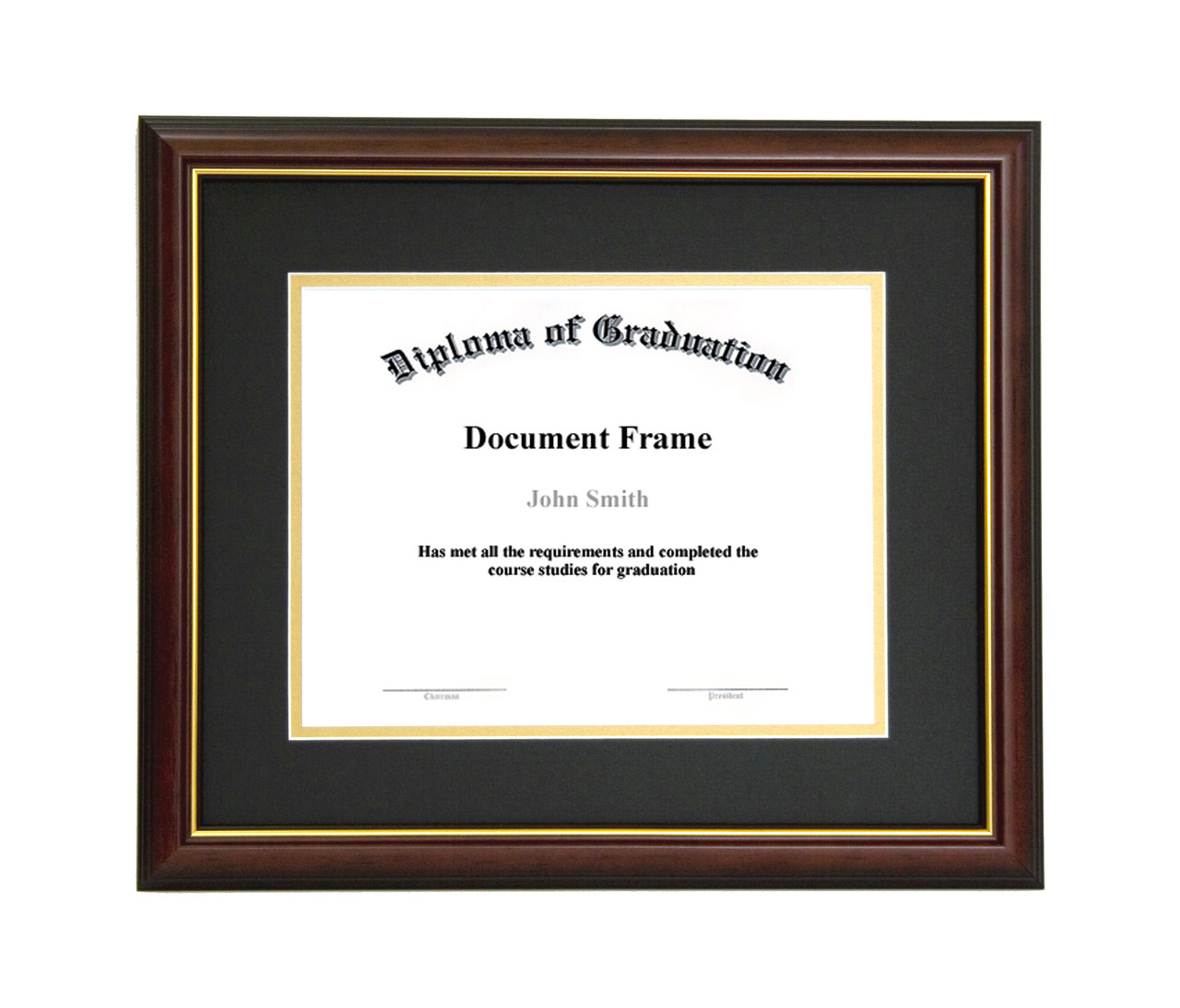 - 11x14 Matted Diploma Frame - Dark Cherry with Gold Lip - Black and Gold Matting
