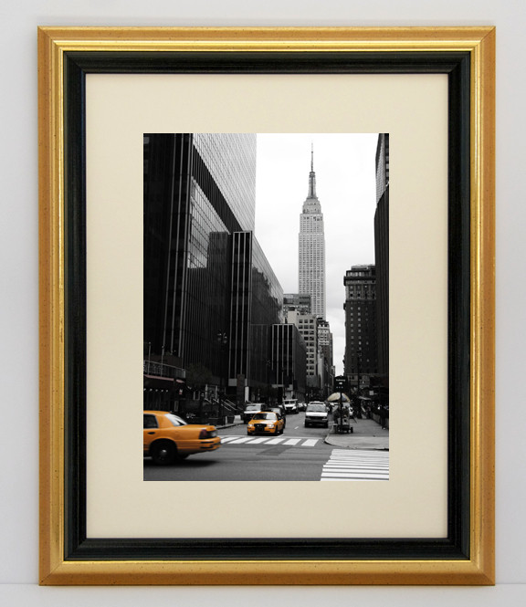 This traditional gold moulding is beautifully offset by a wide black lip. This frame works nicely with either photographs or documents.