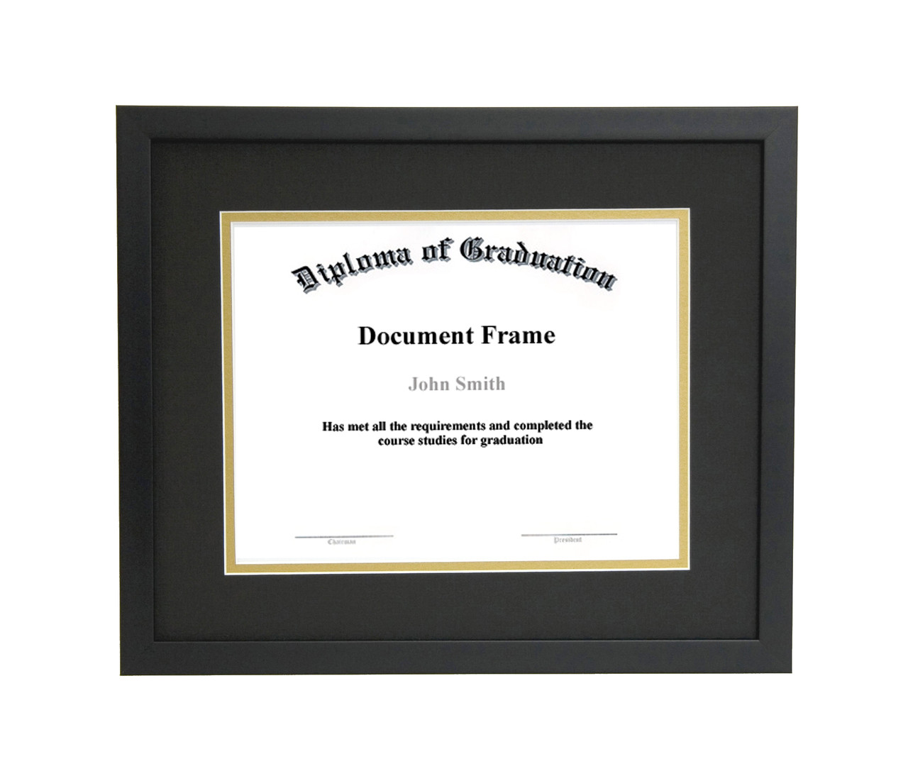 - 8x10 Matted Diploma Frame - Thin Satin Black - Black with Gold Matting