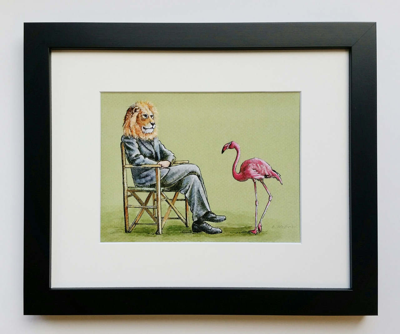 •Comes fully assembled and includes illustration, acid-free 4ply white mat, backing board, Plexiglas and wire